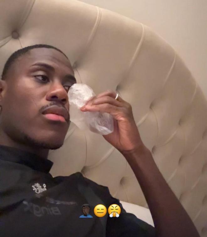 英超第13轮的焦点之战,切尔西主场1-1战平阿森纳,赛后查洛巴晒出冰敷的照片,他在本场比赛被因卡皮耶的肘部撞到了。